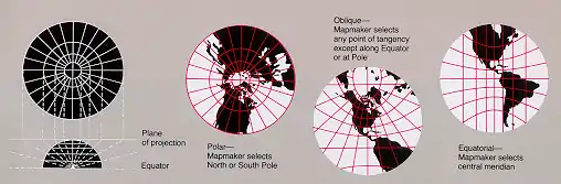 - A map projection made by projecting onto a flat paper touching just one spot on the Earth.