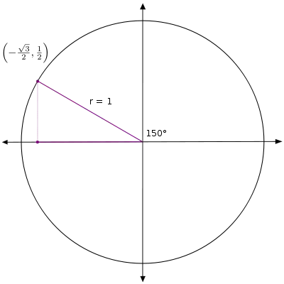 10. Sketch the angle 150° on the unit circle. How is this angle related to 30°? What do you think the ordered pair is?