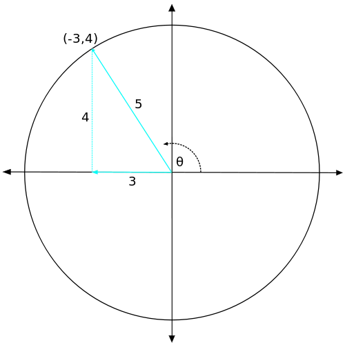Consider an angle in standard position, such that the point (x, y) on the terminal side of the angle is a point on a circle with radius 1.