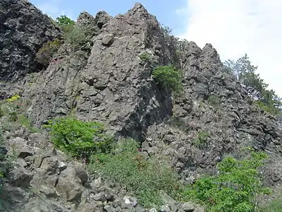 So, an ophiolite is recognized by being something which looks like that — but what is an ophiolite? According to geologists, an ophiolite is a section of oceanic lithosphere from the upper mantle through the igneous crust and up to the sediment on top. (You may note that this means that an ophiolite is a kind of terrane; the subject of ophiolites is of sufficient complexity that I have thought it best to give them their own article.)