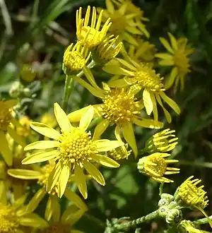- Senecio jacobaea ssp. jacobaea - the typical plant, with ray florets present.