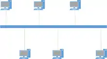Each node in this topology connects to one single cable. This cable is essentially the spine of the network. Data is sent through either side of the cable and into the machines, where machines either ignore the data or accept it. This is considered inexpensive due to there being only one cable, but this can make it extremely detrimental to the company if it were to fail as it is the only wire connecting the different computing devices.