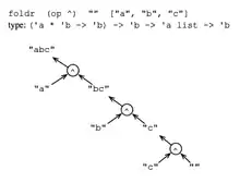 - foldr (op ^) "" ["abc","def","ghi"];