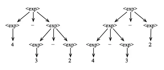 This figure illustrates the ambiguity that occurs because the underlying grammar does not provide any type of associativity to the minus operator