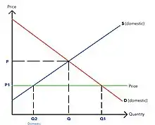 The impact of tariffs can be determined using the tariff diagram as evidence. Imposing tariffs protects the domestic supply as the diagram depicts a reasonable surplus for domestic producers. However, the consumer surplus is smaller than if there was free trade, contrasting the positive view of tariffs held in political science. This has relevance to the US trade with China as over $550 billion[4] worth of products from China had new tariffs imposed, becoming an interdisciplinary issue due to the widespread impact this has.