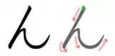 N - It looks like a badly drawn n from the Roman alphabet. The stem is too long and the tail extends too far. |