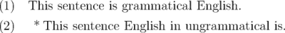 \ex[*] {This sentence English in ungrammatical is.}