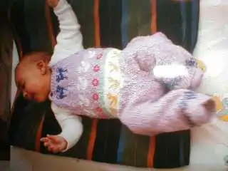 If you want to knit feet, you can make a row of holes, so you can pull a string through. See in the other garments chapter how to knit the feet.