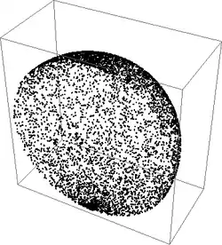 We see that the points are certainly not distributed evenly - they are much more dense at the poles. This is because the mapping from spherical to Cartesian coordinates does not preserve area - the spherical space is pinched and compressed at the poles by the mapping. In order to fix this, we must alter our original distributions.