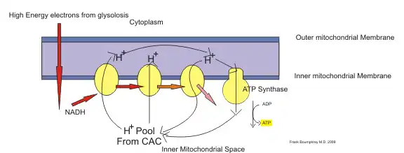 The following flow sheet illustrates how The high energy hydrogen ions move through the High energy transport system, finally using ATPase to produce ATP from ADP