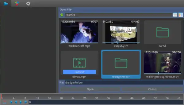With the File Browser it's possible to load video files and image sequences as well. An image sequence is a group of files which are consecutively numbered.