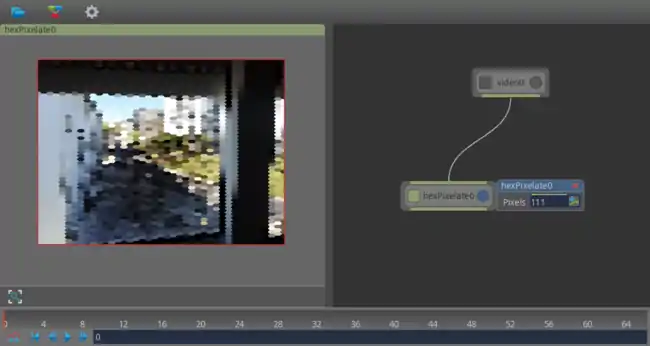 Select the HexagonalPixelate option. A new node called hexagonalPixelate0 is shown next to the footage button.