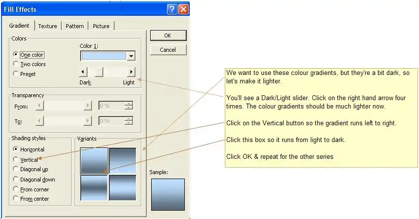 The chart should now look something like this…those colors are probably too light, but there's a nice trick we can use to give them some body.