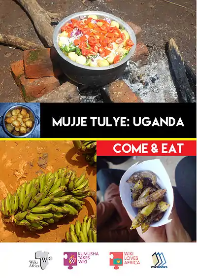 This wikibook belongs to the Come and Eat collection, featuring Mujje Tulye (Come and Eat) from Uganda and Cote d'Ivoire. These two Mujje Tulye wikibooks are the beginning of what we hope will be a series of similar wikibooks that celebrates and provides recipes for local cuisine from different countries and cultures in Africa in a global format that is accessible to all.
