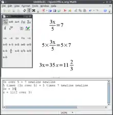 Math is a program for creating mathmetical equations, which can be inserted into the other OOo programs. It is similar to Equation Editor in Microsoft Word.