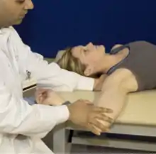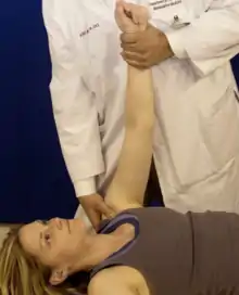 - Clavicle external rotation: the shoulder is abducted to 90o and rotated backward about the elbow