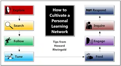 Howard Rheingold: “When I started using social media in the classroom, I looked for and began to learn from more experienced educators. First, I read and then tried to comment usefully on their blog posts and tweets. When I began to understand who knew what in the world of social media in education, I narrowed my focus to the most knowledgeable and adventurous among them. I paid attention to the people the savviest social media educators paid attention to. I added and subtracted voices from my attention network, listened and followed, then commented and opened conversations. When I found something I thought would interest the friends and strangers I was learning from, I passed along my own learning through my blogs and Twitter stream. I asked questions, asked for help, and eventually started providing answers and assistance to those who seemed to know less than I. The teachers I had been learning from had a name for what I was doing — “growing a personal learning network.” So I started looking for and learning from people who talked about HOW to grow a “PLN” as the enthusiasts called them.”