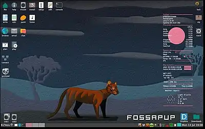It contains several applications including a web browser, word processor, spreadsheet and media player. It was created by Barry Kauler in 2003.