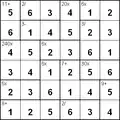 • Place no 1 to 6 once each into every row and column of the grid, while obeying region totals