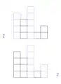 In top example, we can see only 2 blocks that is 4th storey (3 storeys are blocked by it) and 5th storey height (1th and 2th storey are blocked by it)