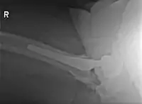 - Miami; 1998 PMID 9160948 -- "Early excision of heterotopic ossification about the elbow followed by radiation therapy." (McAuliffe JA, J Bone Joint Surg Am. 1997 May;79(5):749-55.)