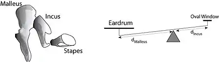 • the lever effect of the middle ear ossicles and