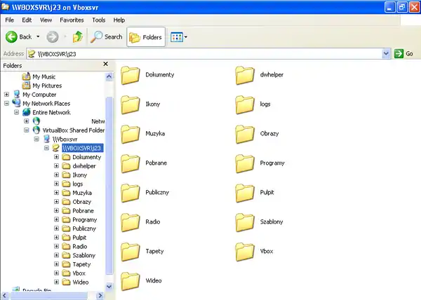 - -> \\VBOXSVR\user_name - Explorer should display all shared folders.