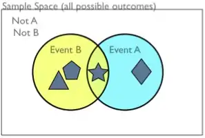 Notice that both event A and Event B have the STAR in common. However, when you list the Union of the events you only list the STAR one time!