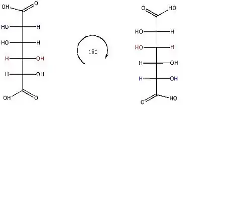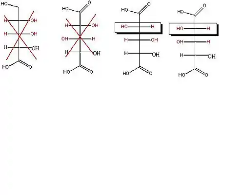 The last part of the Fischer proof was to figure out which one is actually glucose. The last clue to Fischer’s proof was that, while glucaric acid can be derived from two sugars, mannaric acid can only be derived from the oxidation of mannose, because mannaric acid is rotationally symmetrical.