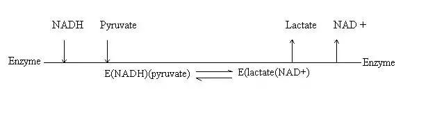 An example is the lactate dehydrogenase enzyme, which is a protein that catalyzes glucose metabolism. In this ordered mechanism, the coenzyme, NADH, always binds first, with pyruvate binding afterward. During the reaction, the pyruvate is reduced to lactate while NADH is oxidized to NAD+ by the enzyme. Lactate is then released first, followed by the release of NAD+.