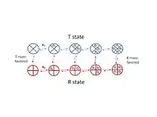 There are two main models of cooperativity for hemoglobin. One of these is the concerted model of cooperativity. This model states that the hemoglobin molecule changes rapidly between its R- and T-states in order to maximize its affinity for oxygen. According to this model, hemoglobin is constantly "flipping" back and forth between states in an attempt to bind as much oxygen as possible. The other model is the sequential model of cooperativity. This model maintains that one strand of hemoglobin starts a sequence of conformational changes in hemoglobin that increase its affinity for oxygen. When one strand of hemoglobin binds oxygen, the hemoglobin rearranges in a manner that favors additional oxygen binding. When the next oxygen is bound, another conformational change occurs to further supplement binding; Thus, hemoglobin can sequentially increase its affinity for oxygen as more and more of its strands bind oxygen.