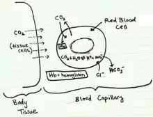This reaction usually progresses very slowly. With the help of the enzyme carbonic anhydrase, the formation of bicarbonate and protons in the red blood cells is accelerated. This causes the pH of the tissue to decrease and promote the dissociation of oxygen from hemoglobin to the tissue, allowing the tissue to obtain enough oxygen to meet its demands. Conversely, in the lungs, oxygen concentration is high. The binding of oxygen causes hemoglobin to release protons, which combine with bicarbonate to drive off carbon dioxide in exhalation. Since these two reactions are closely matched, there is little change in blood pH.