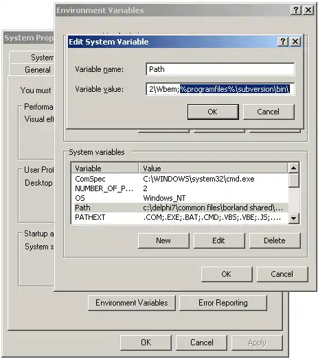 2) Add the path to subversion binaries to the system Path environment variable: %programfiles%\subversion\bin\