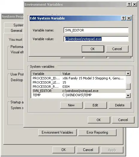 3) Create SVN_EDITOR environment variable to specify text editor to use: