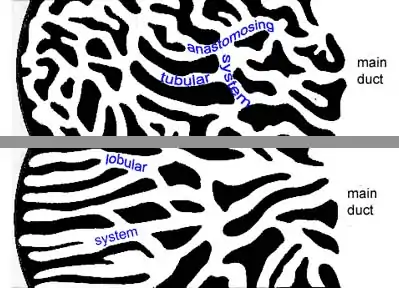 In the image below it is also evident, that the lining seminiferous tissue is built of clusters of cells, the so called spermatocysts [S]. |