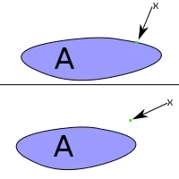 Example: Let A be the segment , The point is not in , but it is a point of closure: Let . (, and therefore ) and (that's because ).