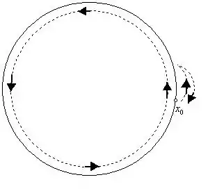 Example: In fact, we've already seen an example of a covering space. In the calculation of above, we implicitly made us of the fact that the real line is a covering space for . The map is the covering map. How can we check this? Well, recall that iff the difference is an integer. So, suppose we're given a point . Let - that is, the set consisting of the whole circle except for the point antipodal to . Then a little thought shows that if , we have . In other words, the preimage of consists of the whole real line except for a 'hole' at each point .