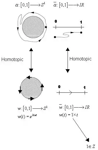 It's easy to imagine that a loop around the circle is not homotopic to the trivial loop. It's also easy to imagine that a loop that gives two complete turns is not homotopic to one that gives only one. Simple intuition seems to be that fundamental group of is related with number of turns. However, the rigorous calculation of involves some difficulties.