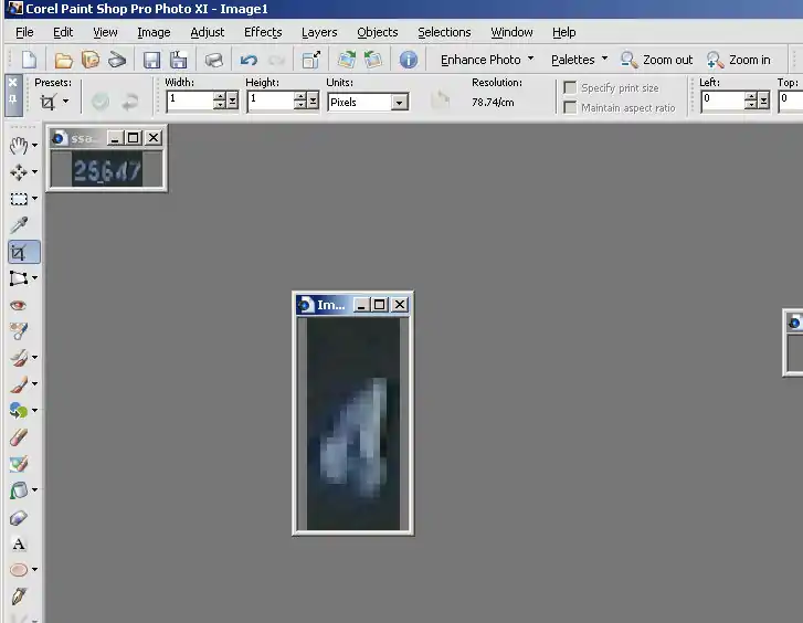 Now use the move tool (1) to position the digit where we want it to be (2).