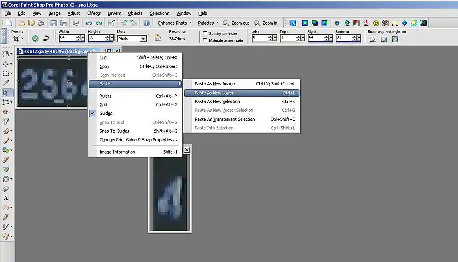 Copy this, then activate the ssa1.tga image by clicking on the blue stripe above and paste as a new layer.