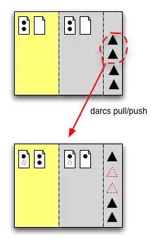 darcs pull copies from some other repository patches that you do not have. The patches are applied to your pristine tree and working directory. This may cause changes to be merged. Note that darcs push does the same thing, but in the other direction.