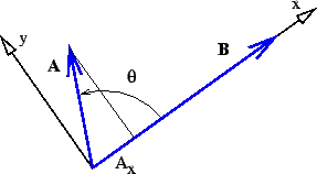 It is easy to show that this is equivalent to the cosine form of the dot product when the axis lies along one of the vectors, as in figure 3. Notice in particular that , while and . Thus, in this case, which is identical to the form given above.