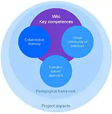 b. The collaborative learning : The wiki-based learning scenarios will provide to students a context for working collaboratively in order to achieve a common learning task. The WikiSkills approach will promote connectivist learning strategies and co-construction behaviours, through which students will learn by connecting with each other and with technology.