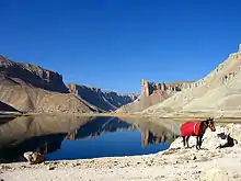 - Band-e-Amir National Park (Commander's Dam) - A Hazara-populated national park situated in central Afghanistan, this scenic beauty boasts 6 blue lakes (Band-e Gholaman, Band-e Qambar, Band-e Haibat [biggest and deepest lake], Band-e Panir, Band-e Pudina and Band-e Zulfiqar) accompanied with natural dams in between them. Band-e-Amir hosts one of the rarest lakes in the world that are made out of a form of limestone called travertine. Several requests were made to the Afghan government over the decades to admit Band-e-Amir as Afghanistan's first national park. Finally, after many years of destructive war, the park was given its worthy title in 2009. According to a 2013 report, the national park entertains around 6,000 tourists every year. The local Hazaras use the national park to aid them in their livelihood. Band-e-Amir is popular during the summer times as the park gets overbearingly cold during the winter.