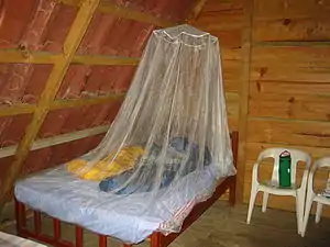 This is a very famous insect because it has killed so many people throughout history. When a mosquito bites, it can pass on diseases like Malaria and Yellow Fever. In some parts of the world people sleep under large nets so they don't get bitten in their sleep. Even when a mosquito is not carrying disease, the bite of a mosquito is very annoying. In some places people spray chemical pesticides to keep the number of mosquitoes down. The use of pesticides help keep their numbers down.