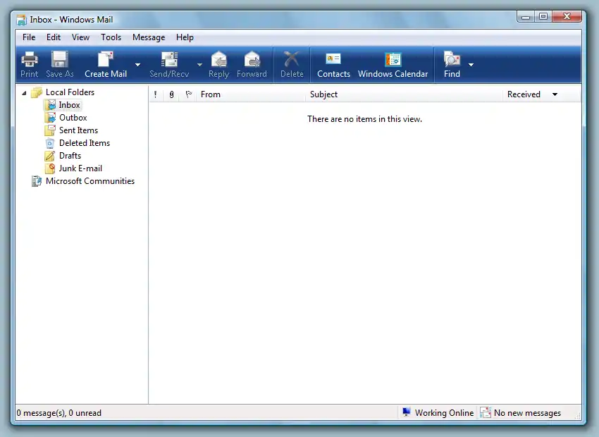 As soon as you launch windows mail the first window you will see is its copyright message window (Fig 1.3). A few seconds later the main window will appear.