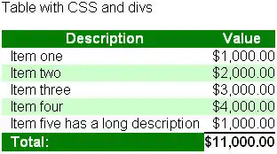 This is an example of using CSS to format a table without actually using the HTML table element. This is critical since some browsers do not support dynamic tabular layout. The Firefox 0.6 extension also does not support the repeat-nodeset attribute, so you can not yet display repeating data inside HTML tables.