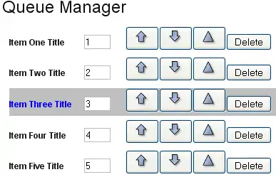The up arrow will move the selected row up one item. The down arrow will move the selected item down one item. The triangle will move the selected item to the top of the queue.