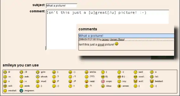 The following markup is supported: [u]underline[/u], [i]italics[/i] and [b]bold[/b], the various possible smileys are displayed with the comment input form: