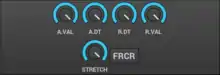 The stretch value: how the envelope is stretched according to the note. On the higher notes the envelopes are shorter than lower notes. The stretch range is from 0 (leftmost) to 200% (rightmost). 200% means that the envelope is stretched about 4 times/octave.